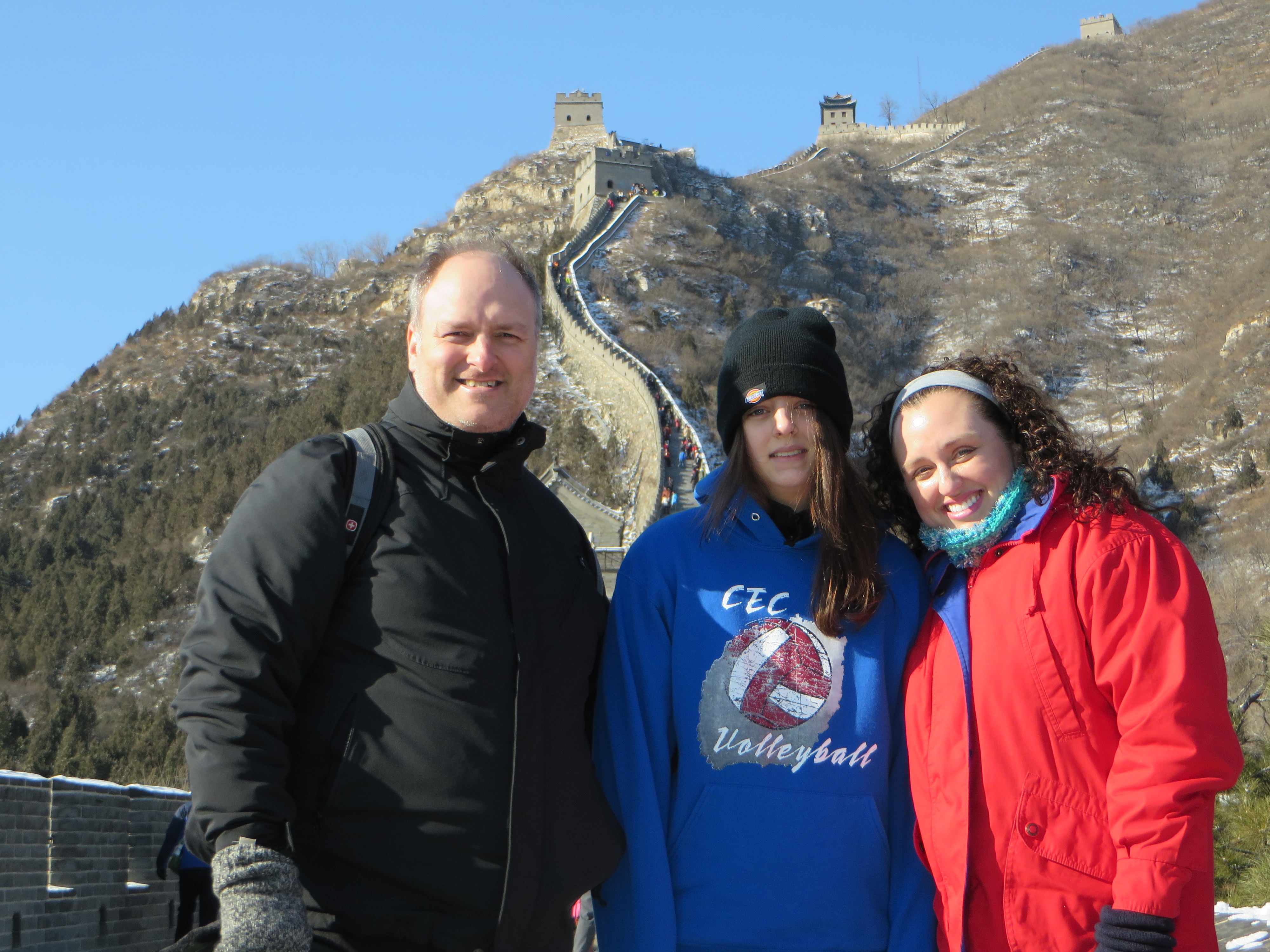 It is Sunday morning, 4:42 a.m. here in Beijing. We had a packed day yesterday. We went to the Great Wall and spent 90 minutes there or so. It was cold once again so we hiked a bit up and down and then went to the coffee shop located at the base of the Wall. The steps were quite steep and snow covered, so as much as I wanted to climb to the top of the first tower where we were located, I want to pick up my daughters without any broken bones more. We spent 45 minutes or so taking pictures and considering the scenery. It goes without saying that is it quite a marvel.